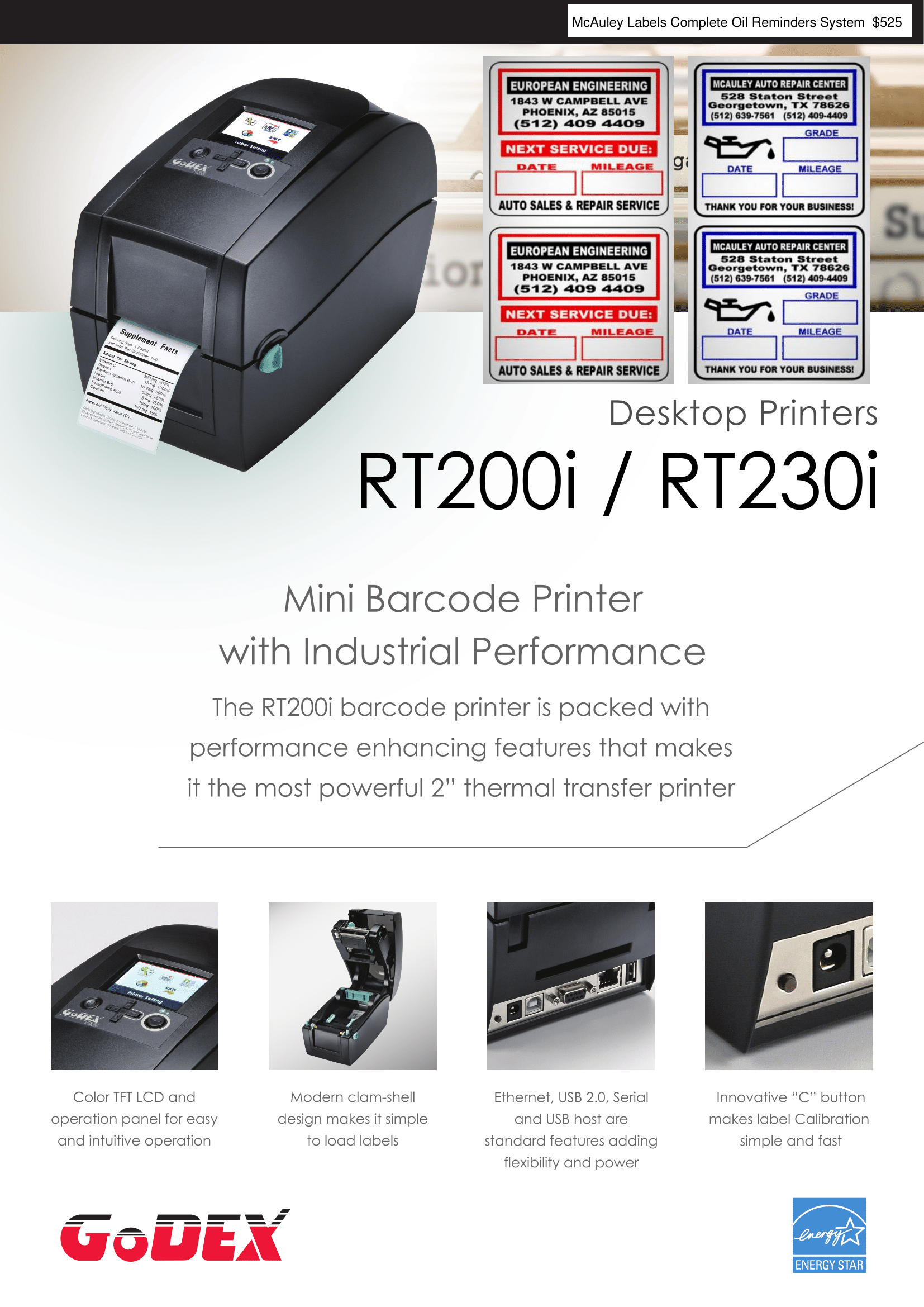 ‘MCAULEY LABELS’ Premium Godex TTR Printer Package With 3 Year Factory Warranty